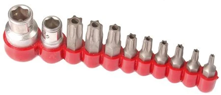 Bit-Satz | Antrieb Außensechskant 6,3 mm (1/4″) / 10 mm (3/8″) | T-Profil (für Torx) mit Bohrung | 11-tlg.