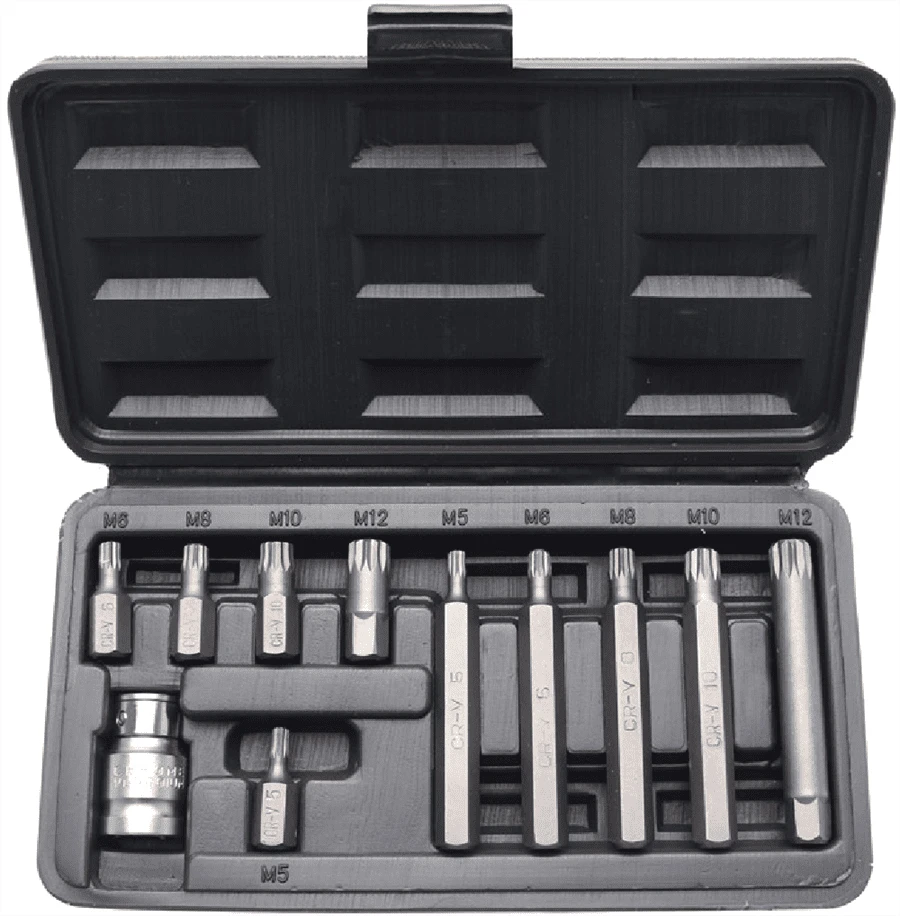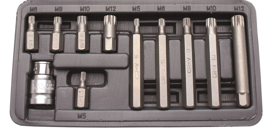 - 5 x Bits, lang, Antrieb Außensechskant, Innenvielzahn (für XZN) M5 – M6 – M8 – M10 – M12