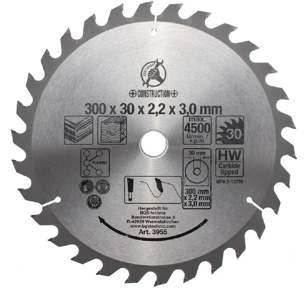 Hartmetall-Kreissägeblatt | Ø 300 x 30 x 3,2 mm | 30 Zähne