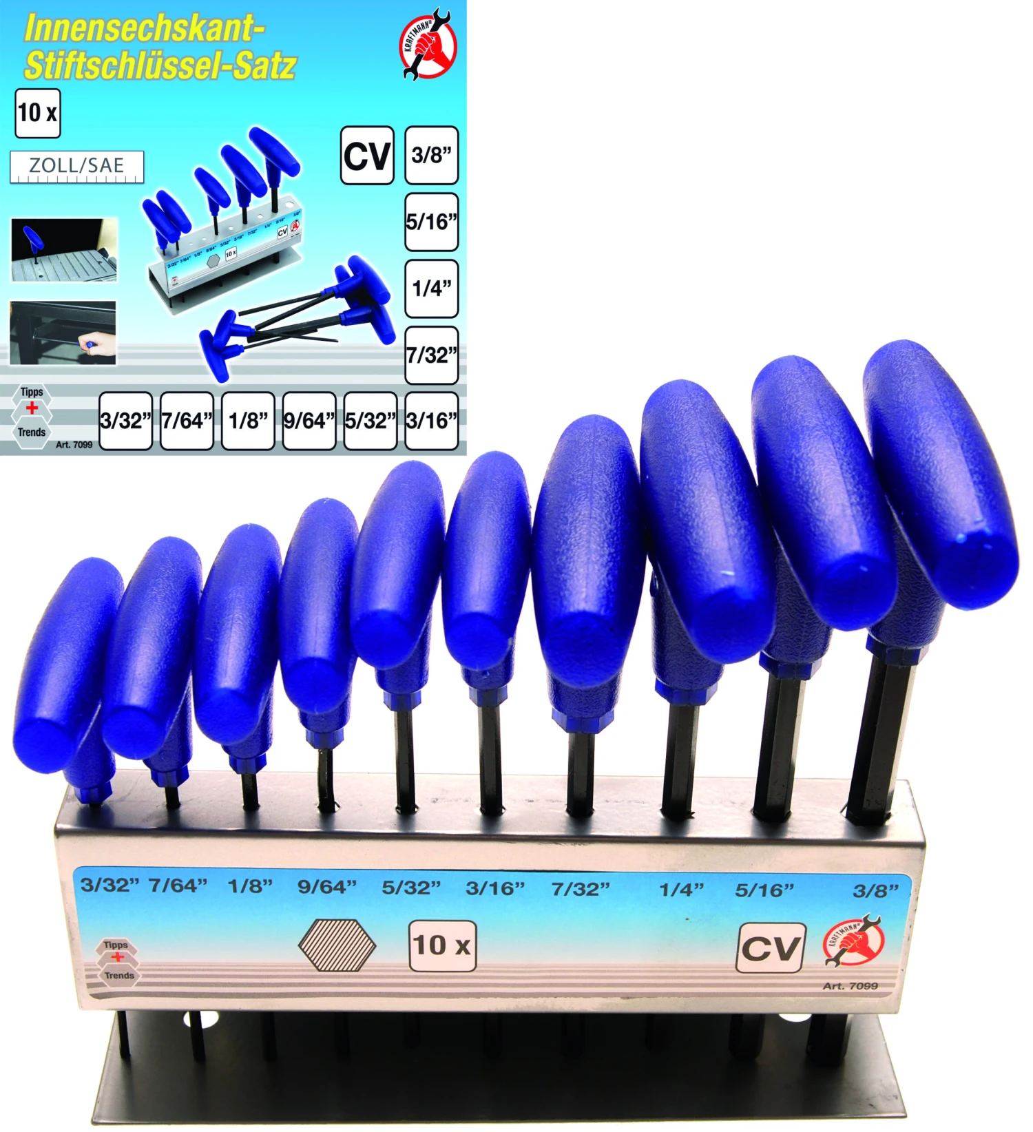 Schraubendreher-Satz mit T-Griff | Zollmaße | Innensechskant 3/32″ – 3/8″ | 10-tlg.