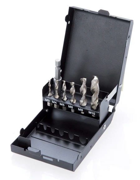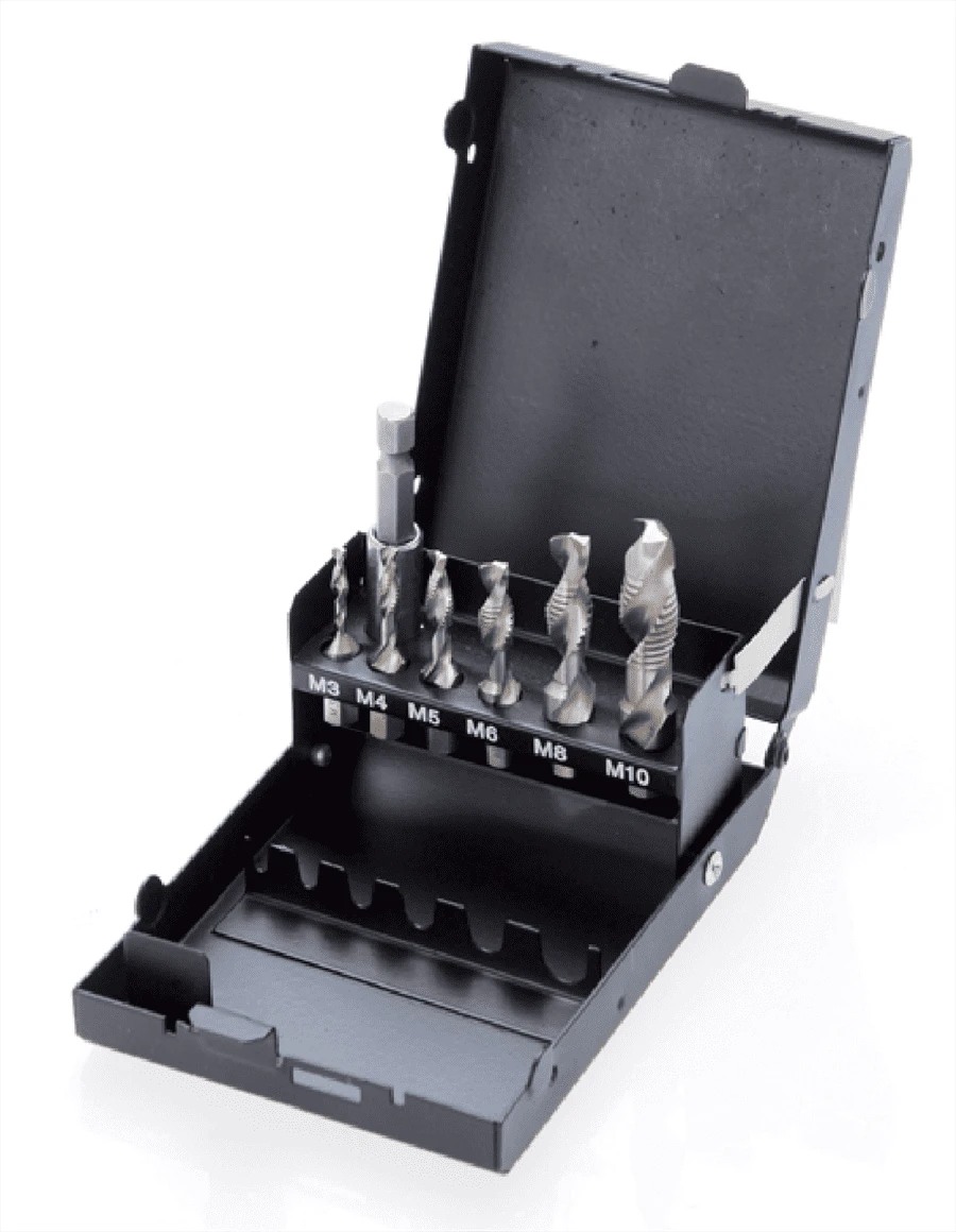 - 6 Kombibohrer M3 x 0,5 – M4 x 0,7 – M5 x 0,8 – M6 x 1,0 – M8 x 1,25 – M10 x 1,5