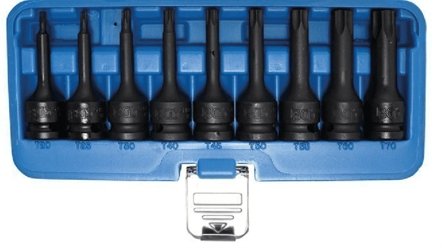 Kraft-Bit-Einsatz-Satz | 12,5 mm (1/2″) | T-Profil (für Torx) T20 – T70 | 9-tlg.