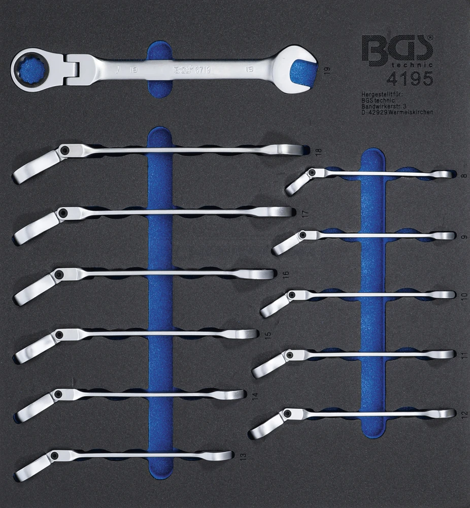 - 1 Ratschenring-Maulschlüssel | abwinkelbar | SW 19 mm (Art. 6719)