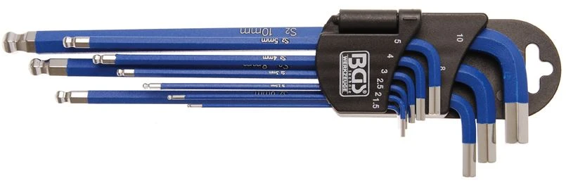 Winkelschlüssel-Satz | extra lang | Innensechskant/Innensechskant mit Kugelkopf 1,5 – 10 mm | 9-tlg.