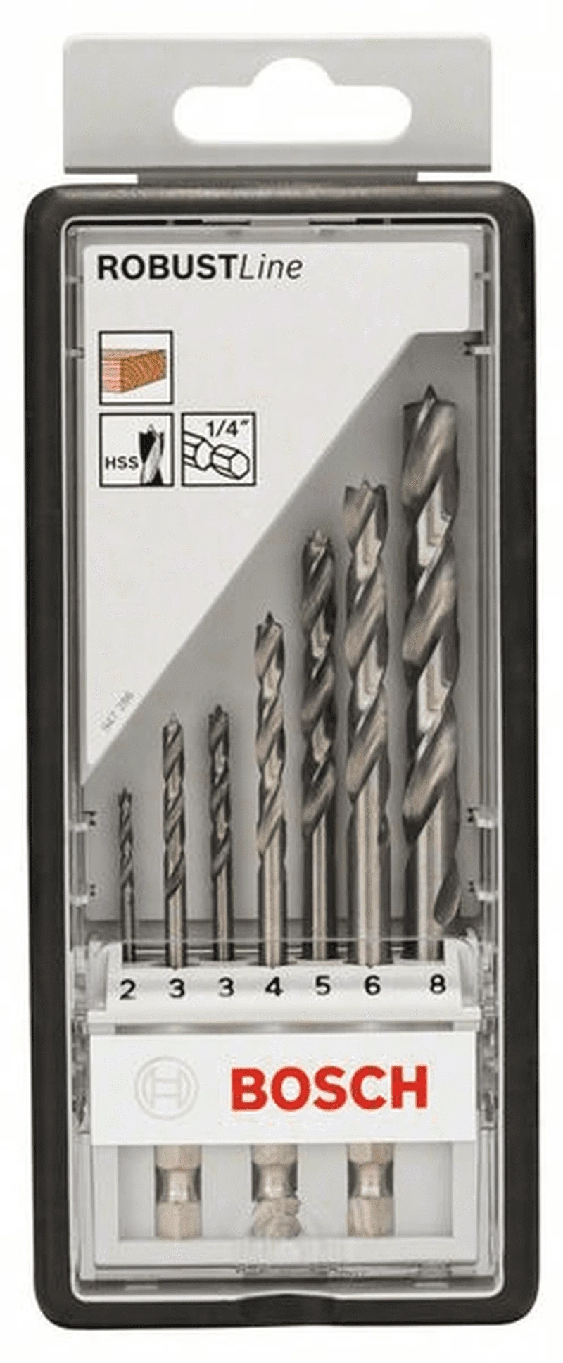 BOSCH Professional Holzspiralbohrer-Set Robust Line, 1/4″-Sechskantschaft, 7-teilig, 2 – 8 mm 2607019923