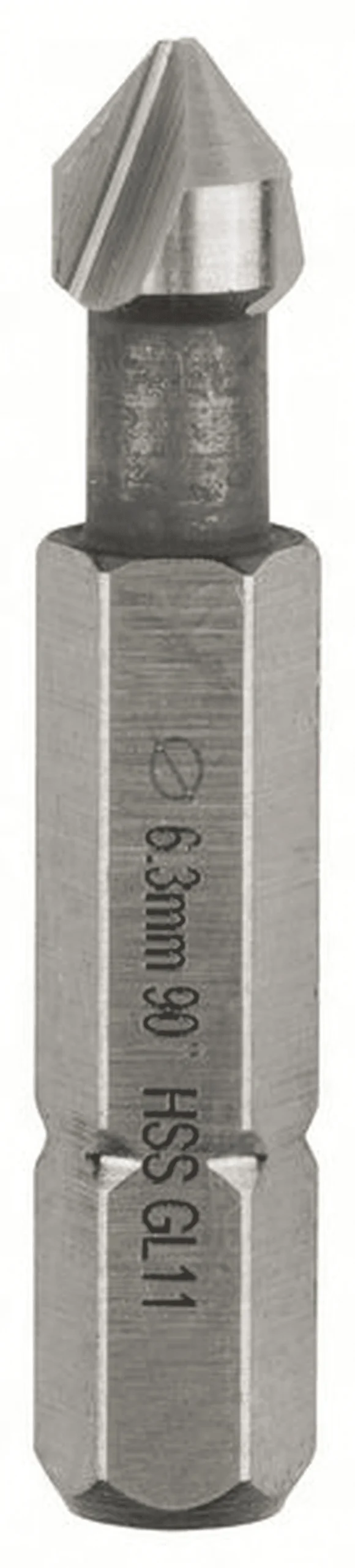 Kegelsenker HSS. Sechskantschaft. Durchmesser: 6,3 mm, Senkung M 3, Gesamtlänge: 31 mm, Schaftdurchmesser: 1/4 Zoll. Geeignet für Nichteisenmetalle, legierten und unlegierten Stahl, Grauguss. Geschliffener Senker nach DIN 335 mit Sechskantschaft mit Bit-Aufnahme nach ISO 1173 C6.3. Mit drei 90 Grad-Schneiden.