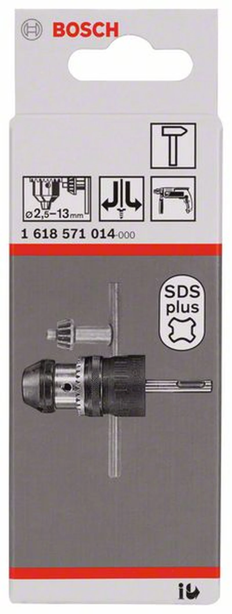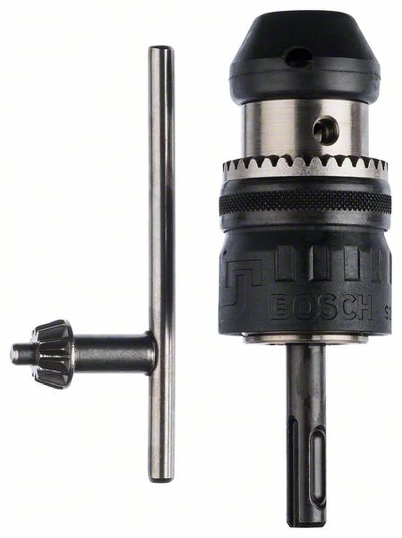 Zahnkranzbohrfutter bis 13 mm, Einspannbereich von 2,5 bis 13 mm, Aufnahme, Bereich: SDS-plus, hammerfeste Ausführung, mit Spannkraft-Sicherung, Eignung für Rechts-/Linkslauf