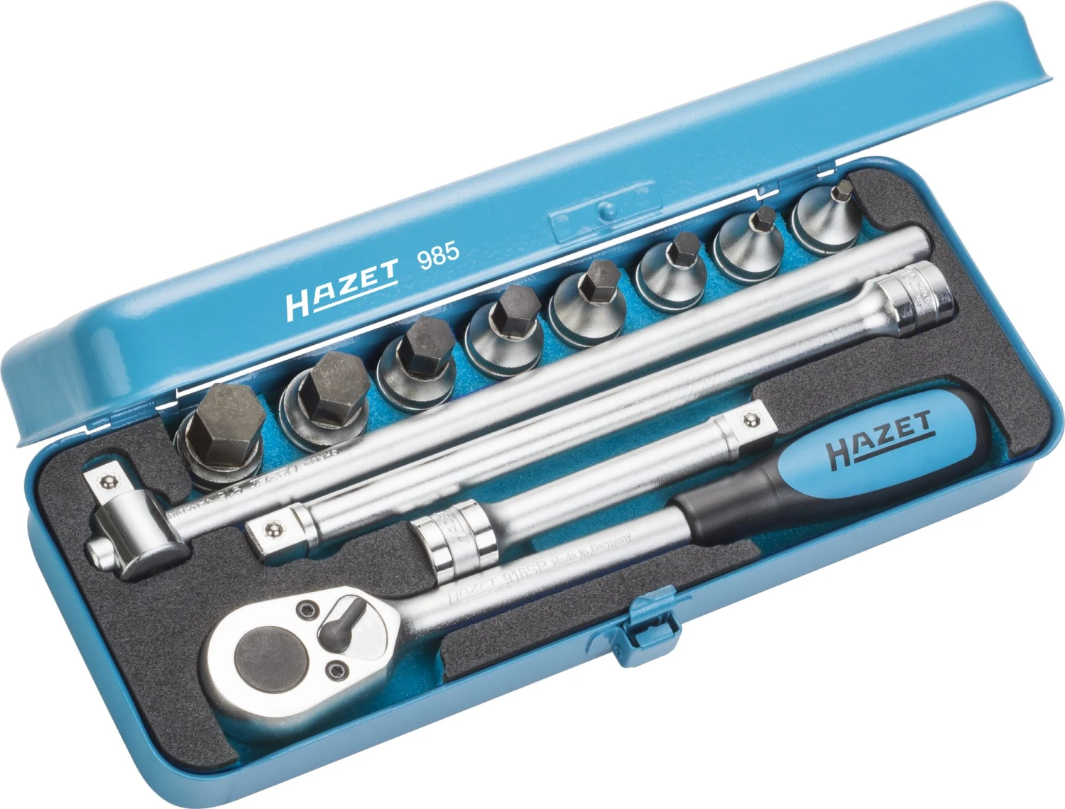 - Verpackung außen: Metall-Kasten (HAZET-Blau)