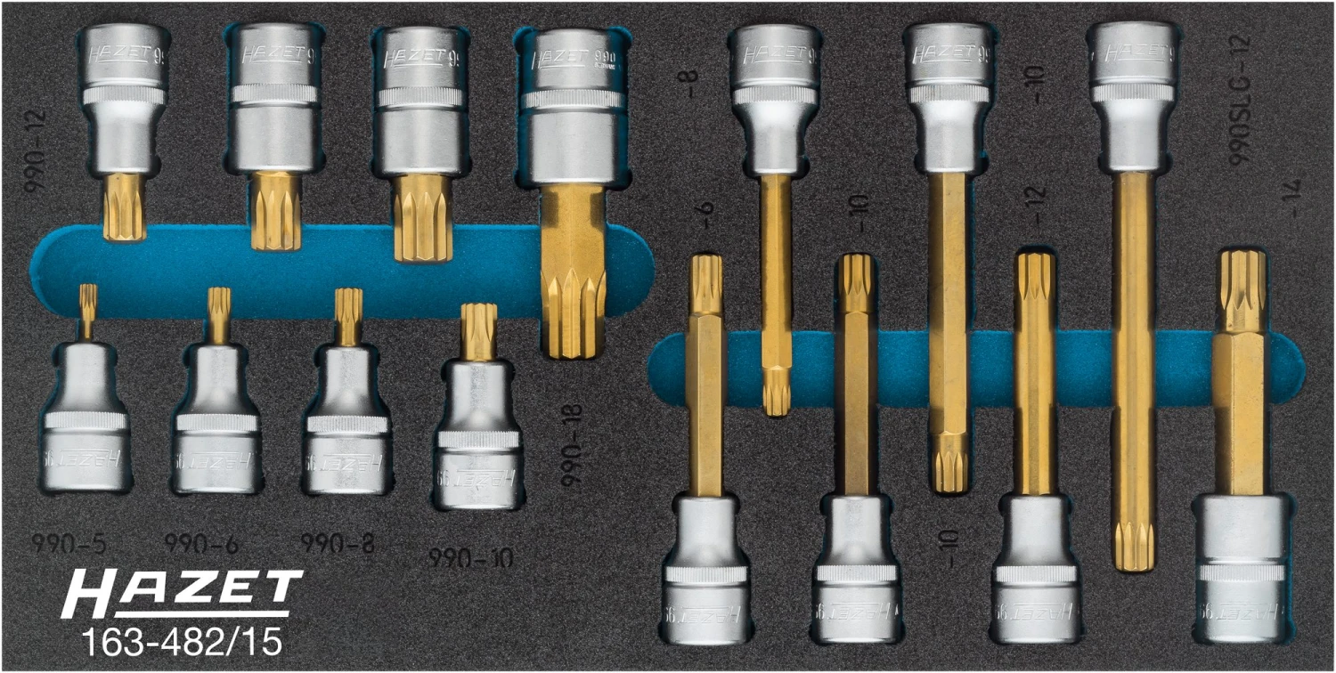HAZET XZN Schraubendrehersatz 12,5mm 1/2 Zoll Innen Vielzahn XZN 15tlg 163-482/15